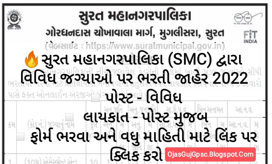 SMC Recruitment 2022 : Surat Municipal Corporation (SMC) has Published official notification for recruitment of assessment & recovery officers,garden superintendent and deputy garden superintendent posts.Interested candidates should apply online for SMC Job vacancies 2022 before 21 August 2022.You can find information about education qualifications,age criteria,important dates,salary and how to apply for SMC Bharti 2022 Gujarat.Stay updated with us and visit regularly OjasGujGpsc for Gujarat sarkari bharti Update & News .